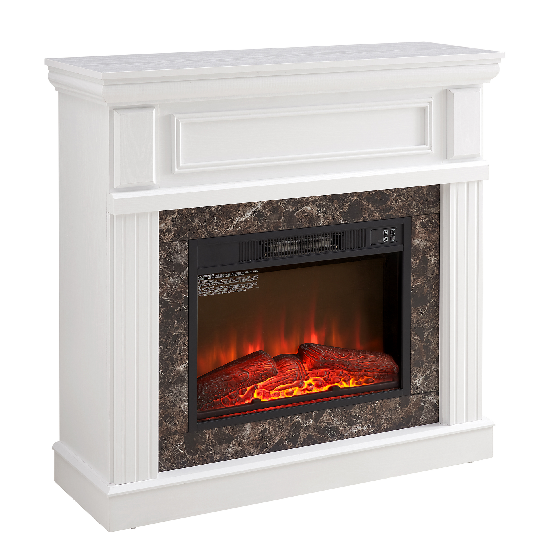 PAPROOS 41” Electric Fireplace with Mantel, Freestanding Electric Fireplace Heater with Remote Control, Adjustable Flame, Timer, Wooden Surround with Fireplace Insert for Living Room, 1400W, White