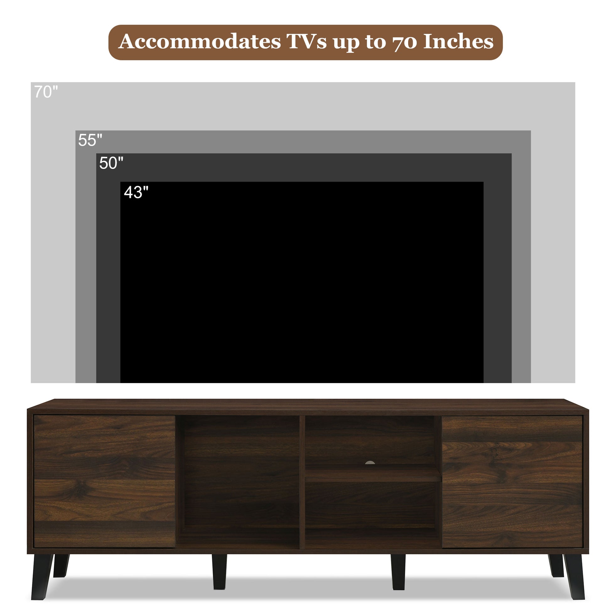 TV Stand for TVs up to 70" -- Measured 63"W x 15.75"D x 22.05"H, PAPROOS Mid Century TV Stand holds TV up to 70". Designed in mid-century modern style, this TV cabinet is not only an entertainment center for your family but also an great decoration for your living room, bedroom, or office.