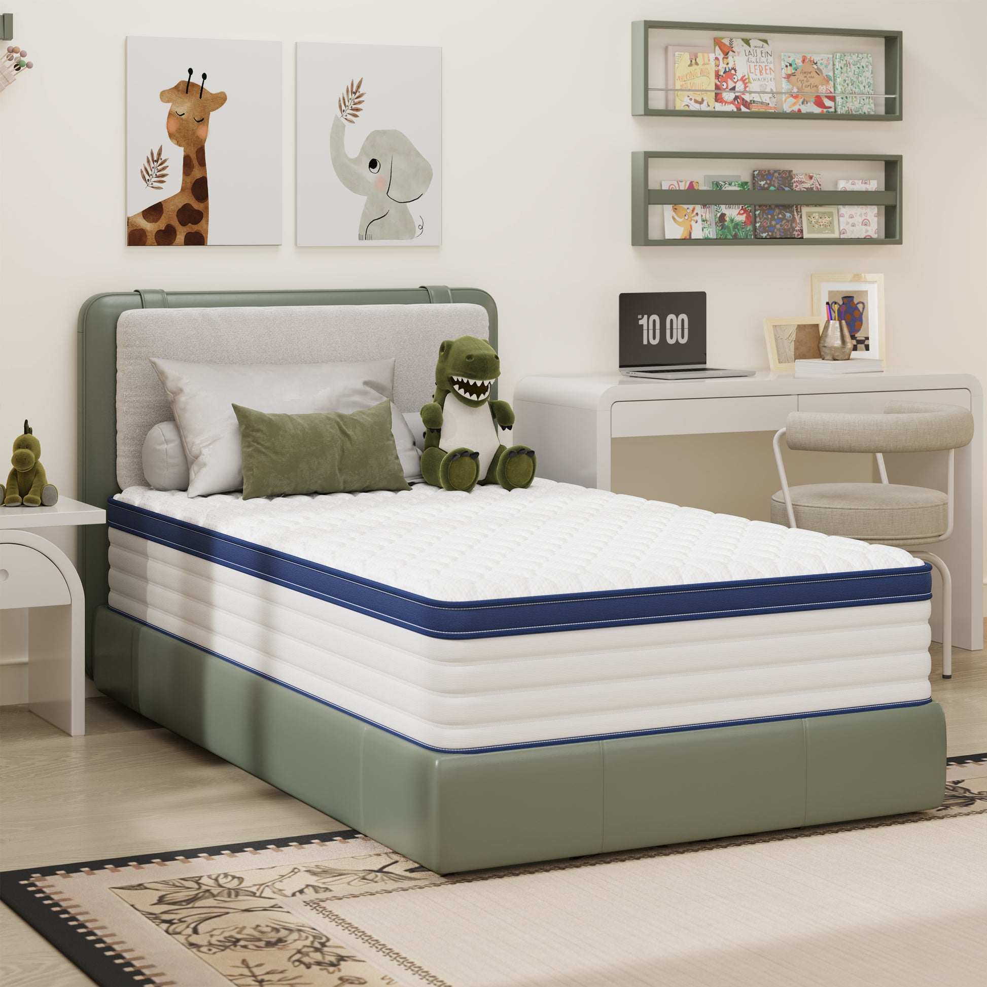 Twin Mattress, PAPROOS 12" Memory Foam Hybrid Mattress in a Box, Cool Individual Pocket Spring Mattress with Breathable Knitted Fabric Cover, Twin Size Medium Firm Mattress, CertiPUR-US, White/Blue